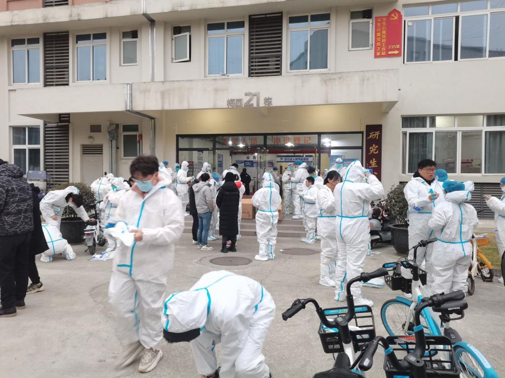 各年级同学积极投身于志愿服务,党员、学生干部冲锋在前。本次送餐人员最初有四位同学,李晨晨、胡祥洲、黄利、格桑扎西,之后更多同学加入到志愿者队伍中来,其中有张骁倓、陈浩宇、罗永福、陈乐森、习志霄、杨晓雨、何蓝平、谯蓉蓉、李敏慧、唐辉梅、陈垣敏、温馨、谢雨霄等,志愿者队伍愈发壮大。大家轮换值班,互相勉励,其余志愿者随时待命。一部分人员负责核酸采集工作,一部分为隔离寝室配餐。